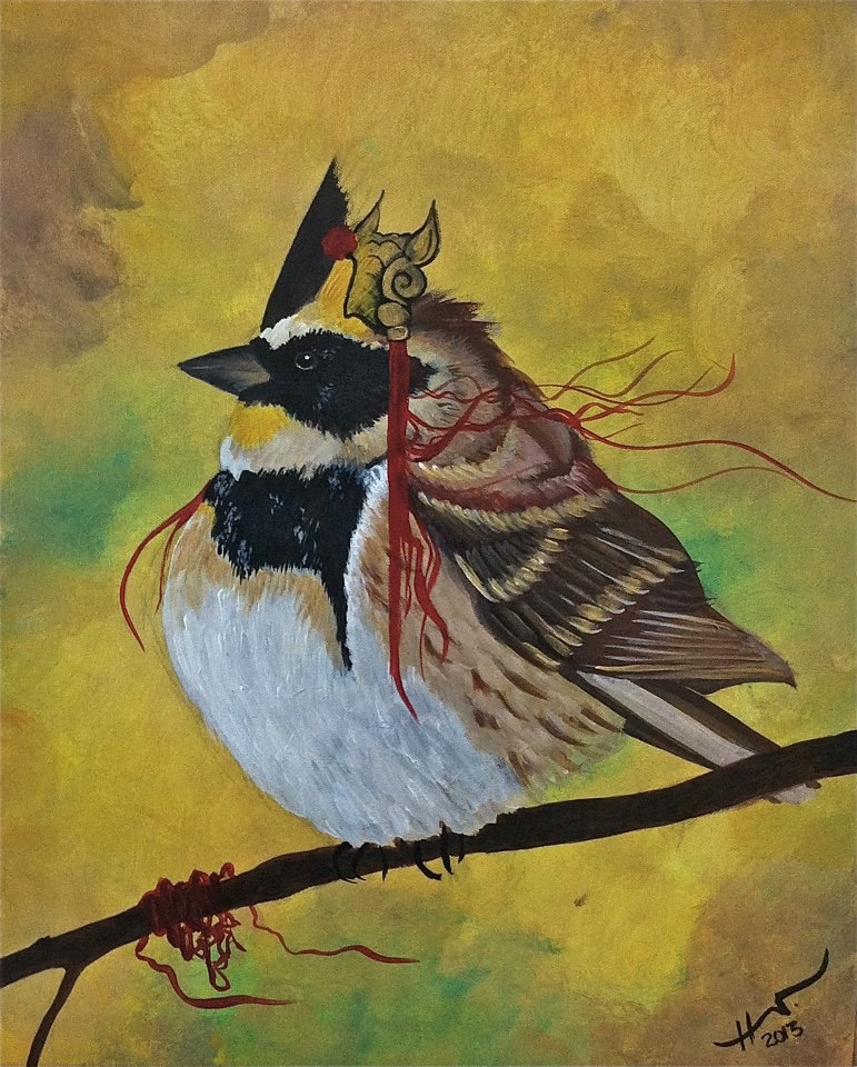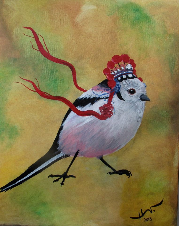 These paintings are very special, to me. They were a series I completed while living in China. Each bird is a bird found in China, and wears an imperial hat unique to each dynasty.